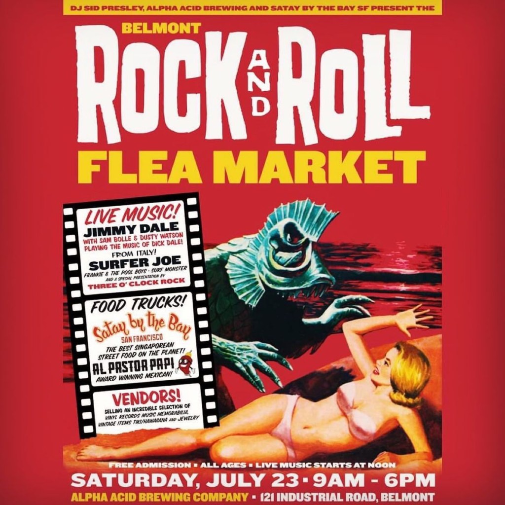 Also, save this date – Sat July 23 – @belmontrockandrollfleamarket at @alphaacidbrewingco. It’s an event that we put together, featuring world-class surf music with Jimmy Dale playing the music of his father Dick Dale, Surfer Joe (Surf music from Italy!), and more! There’ll be record vendors and more. Also food by @sataybythebaysf AND @alpastorpapi. YUM! Free admission. All ages. Follow the event page for more info…