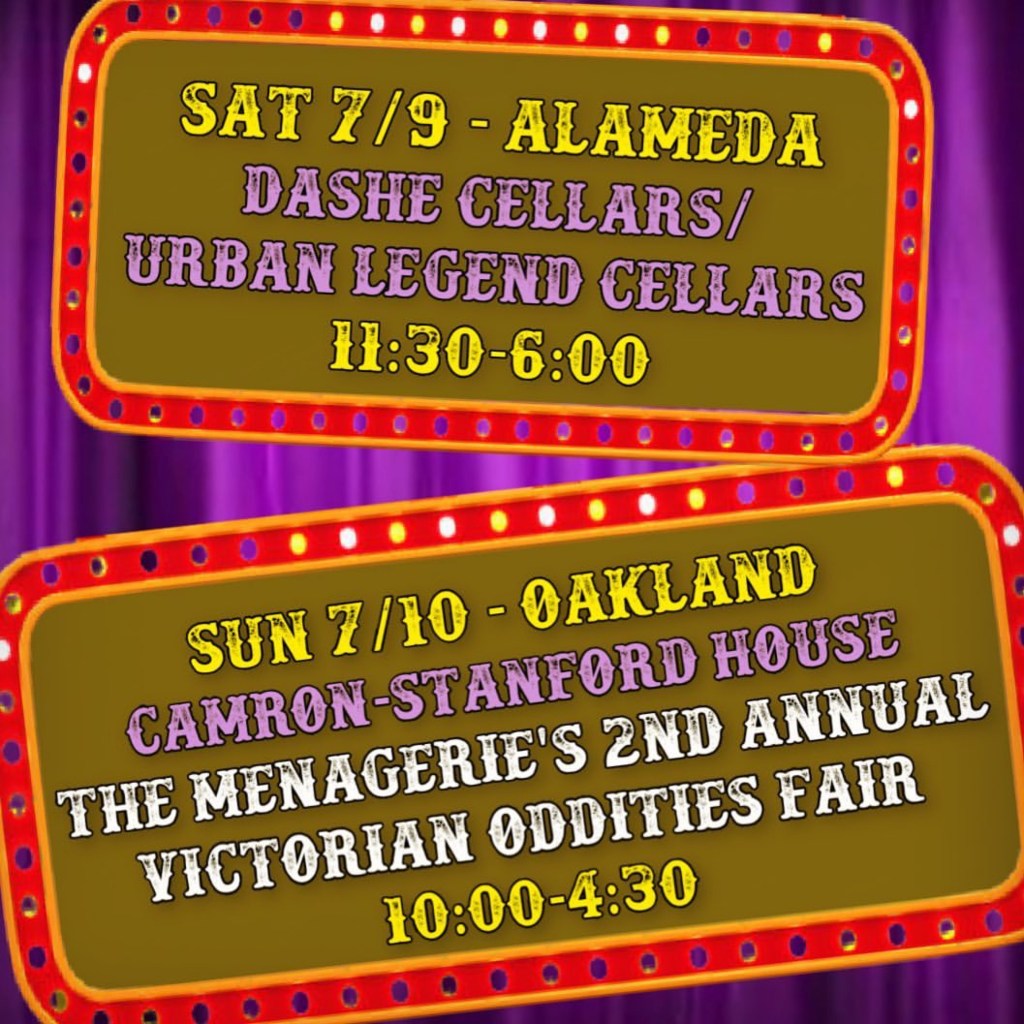 Sunday – OAKLAND – Camron-Stanford House (Lake Merritt). Join us at @themenageriealameda’s 2nd Annual Victorian Oddities Market. 10am-4:30pm