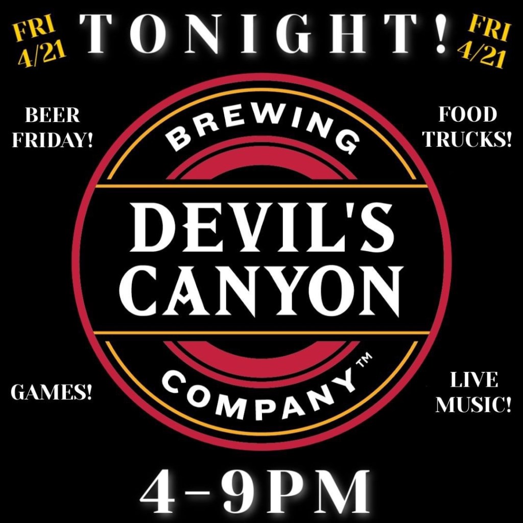 We’re heading back to San Carlos tonight! See you at Devil’s Canyon Brewing Company [@devilscanyon] for BEER FRIDAY, their weekly program which features food trucks, live music, games, and more.