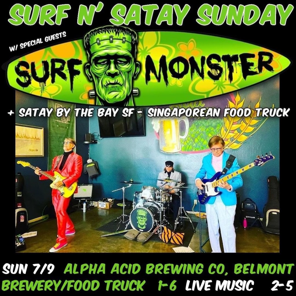 Sun – BELMONT – Alpha Acid Brewing Co [@alphaacidbrewingco] / Surf N’ Satay Sunday w/special musical guests Surf Monster [@surfmonsterband]! Free admission – All Ages – Craft Brew – Satay! Come n’ get it π₯π₯π₯