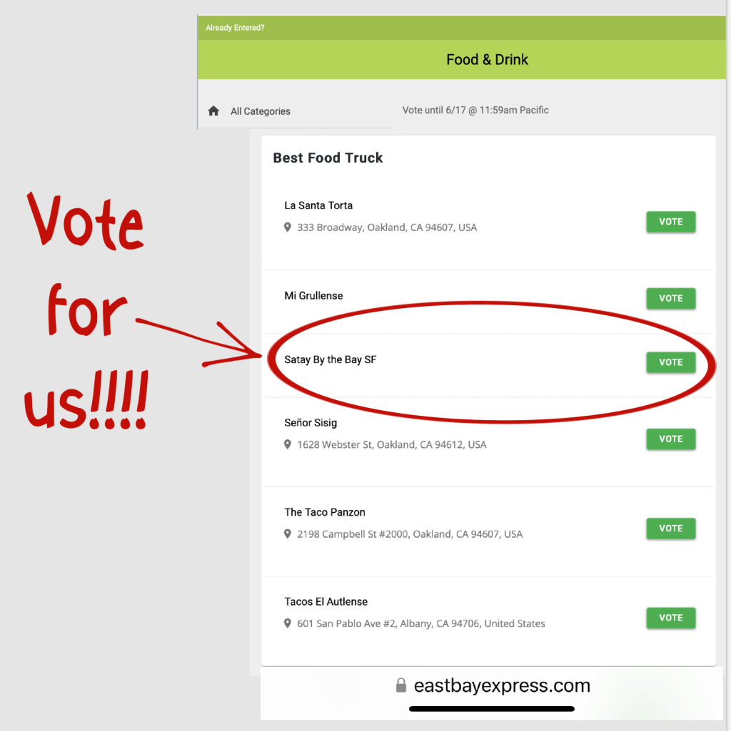 Now that we know, we want to encourage everyone to VOTE FOR SATAY BY THE BAY SF!