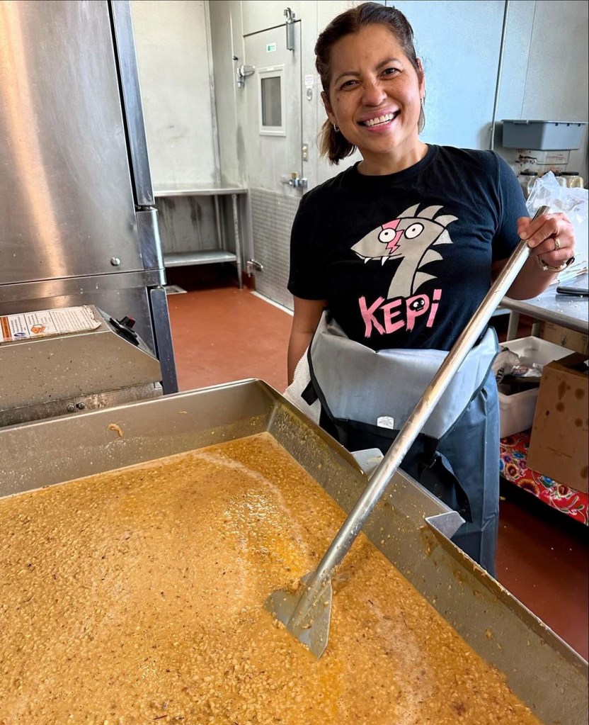 Elly’s cooking up a new batch of peanut sauce today, getting ready for a blowout weekend in the park…