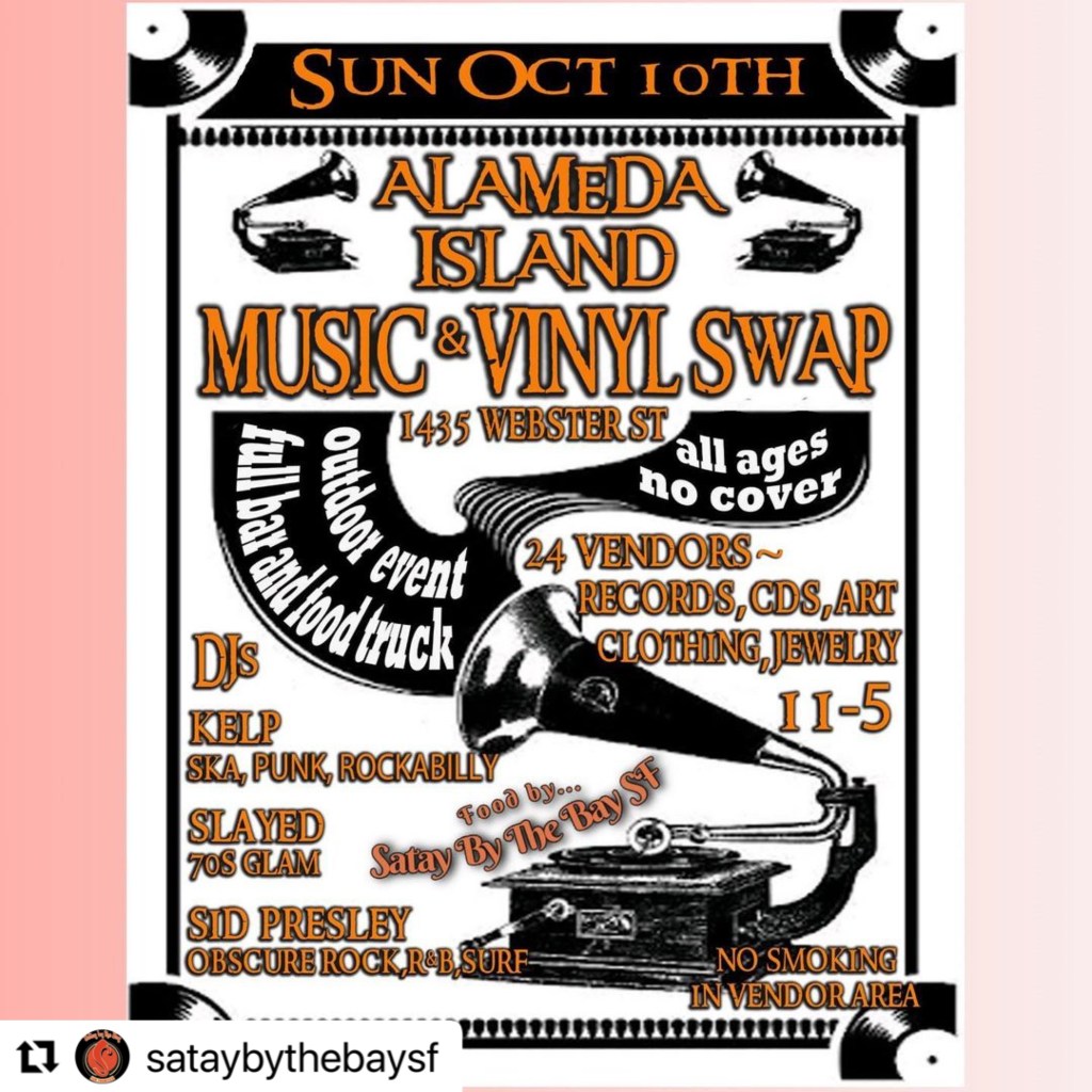 Join us at the Alameda Island Record Swap, featuring 24 vendors selling records, CD’s, clothing, jewelry, and more. Also, David’s back on double duty as @djsidpresley , playing vintage 50’s and 60’s rock and roll, surf, and Halloween-themed music