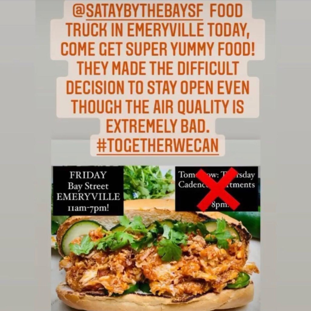 Please support your favorite food trucks as this is our livelihood and we still want to share our love for food, rain or shine, orange skies or thick haze!